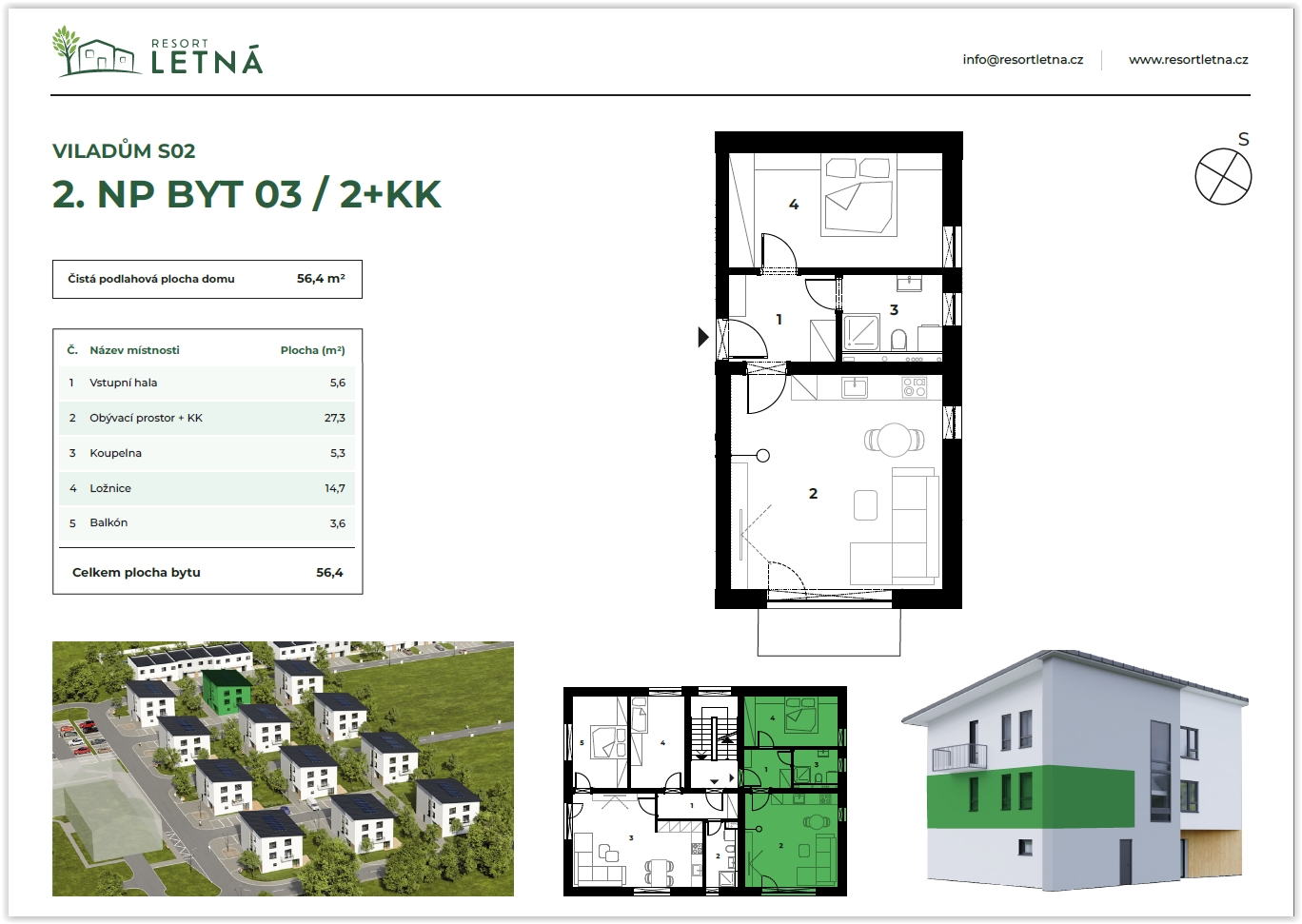 | Podlahová plocha/m² | 56.4 m² |